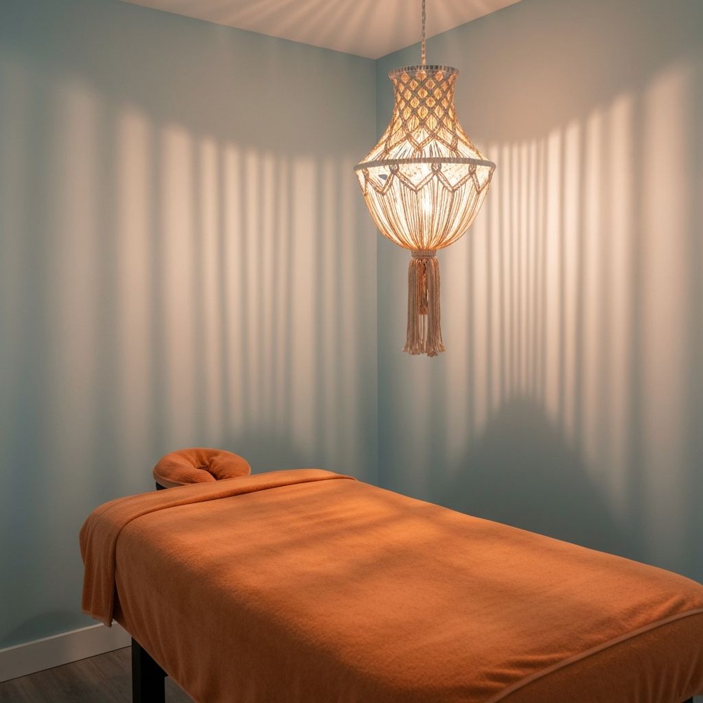 Оформление СПА-центра в морском стиле с использованием макраме из натурального хлопка и джута.